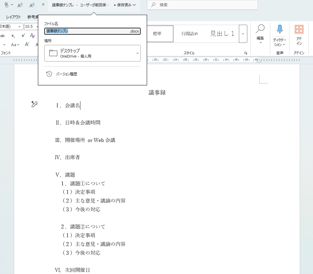 - ファイル名に「議事録_確定版」のような表記を追加する