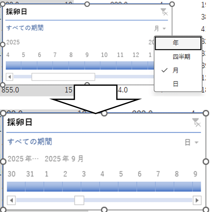 今回の採卵日のデータは12月分しかないので月 ⇒ 日に変更します。