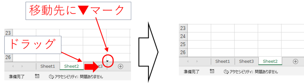 3.ドラッグを離すと目的の位置にシートタブが移動します。