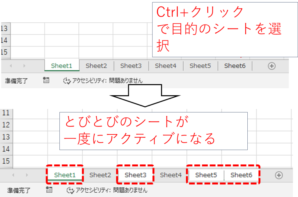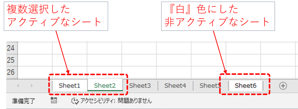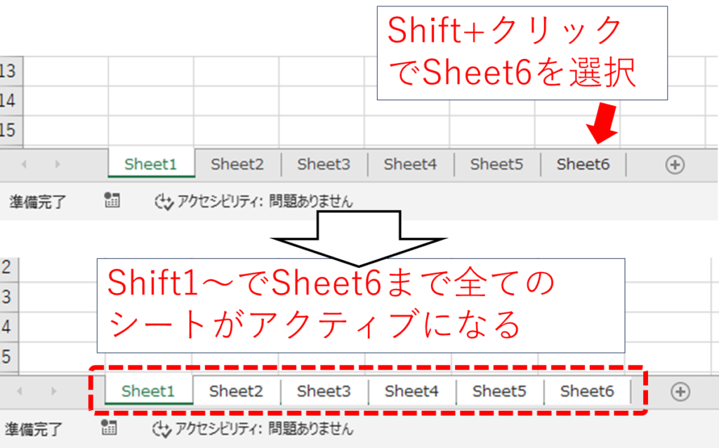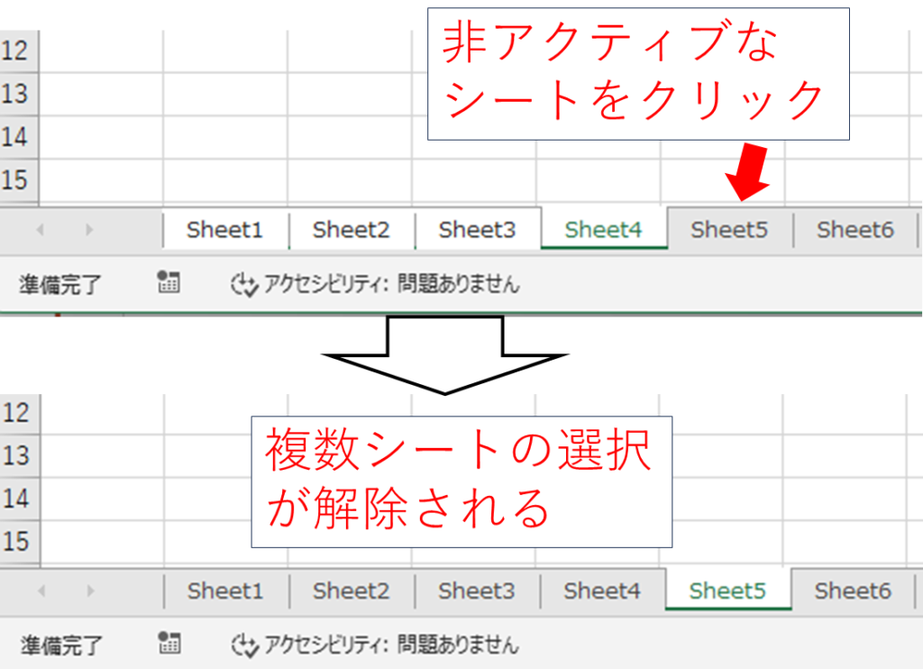 ※複数のシートを選択した状態で作業を続けていると思わぬトラブルが起きてしまう場合があるため、