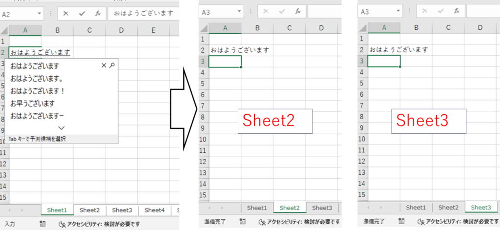 複数シートをまたがって作業を行う上で重要なテクニックです。
