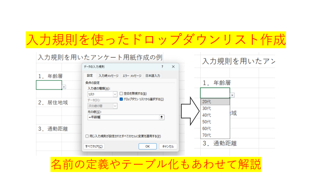 Excelには、入力ミスを防ぎ、データを整えやすくするための便利な機能として『データの入力規則』によるドロップダウンリストがあります。 アンケートや申請書、業務データの入力など、入力内容を統一したい場面では特に効果的です。 入力する側:選ぶだけ...
