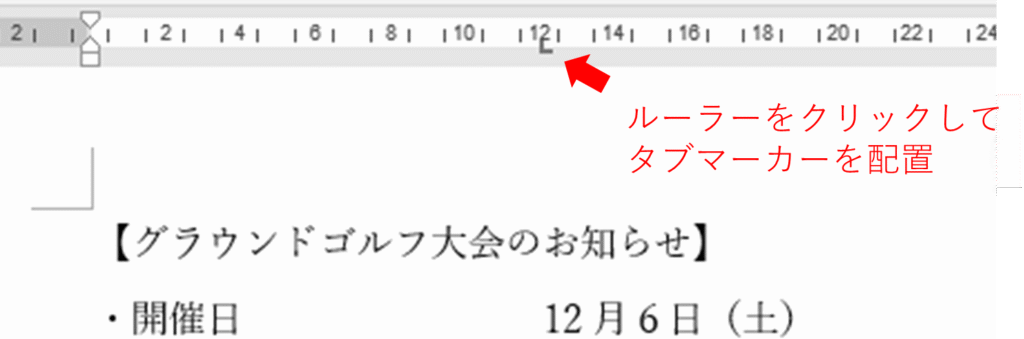 2.ルーラー上の任意の位置をクリックして、タブマーカーを配置します。