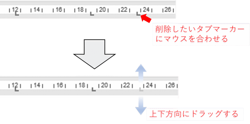 1.削除したいタブマーカーにマウスポインターを合わせます。