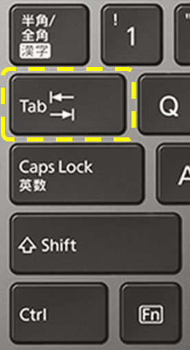 キーボードの左側にある『Tabキー』を押すことで、操作することができます。